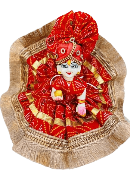 The elegant Jaipuri print and vibrant colors give a royal Rajasthani touch, while the matching pagdi (turban) set enhances the divine look of Thakur Ji. Lightweight and skin-friendly, this cotton poshak is ideal for summer wear, daily seva, and festive dressing.