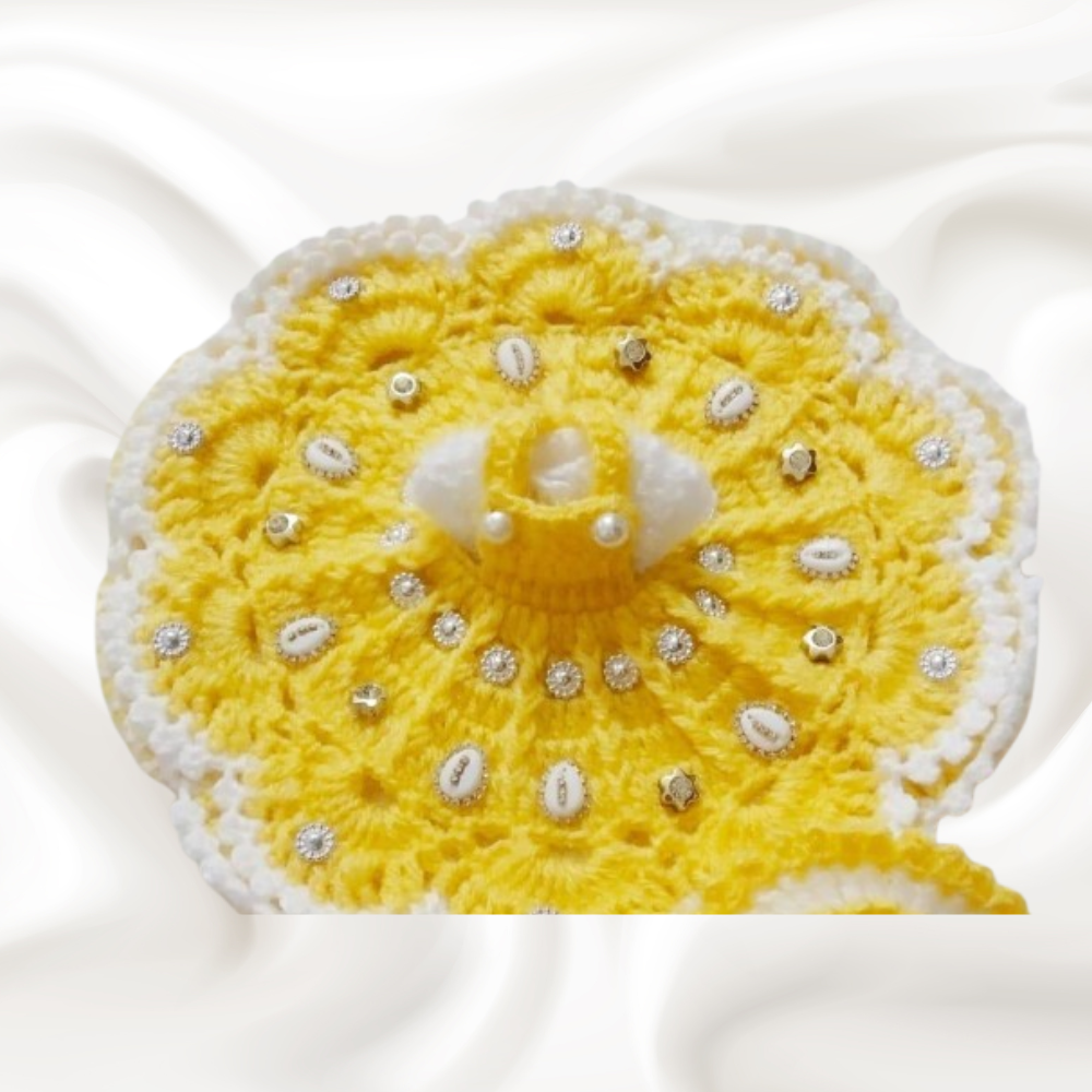 Give your Laddu Gopal Ji a radiant winter look with this Yellow and White Woollen Dress adorned with fine moti work. Soft, warm, and beautifully handcrafted, this outfit is designed to keep your Bal Gopal cosy during chilly days while adding a touch of festive elegance to His divine appearance.