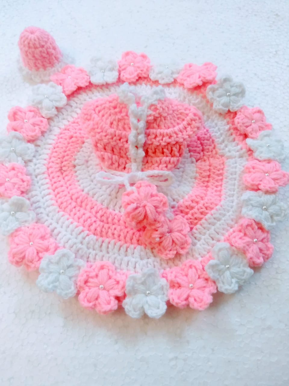 Give your Laddu Gopal Ji a warm, divine, and adorable winter look with this Pink & White Woollen Dress!